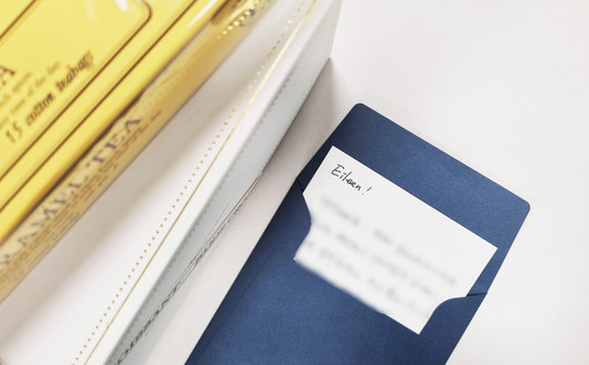 디저트 & 티 세트와 대표님이 직접! 작성하신 카드를 함께 전달드리며 입사 100일을 기념합니다 🎈